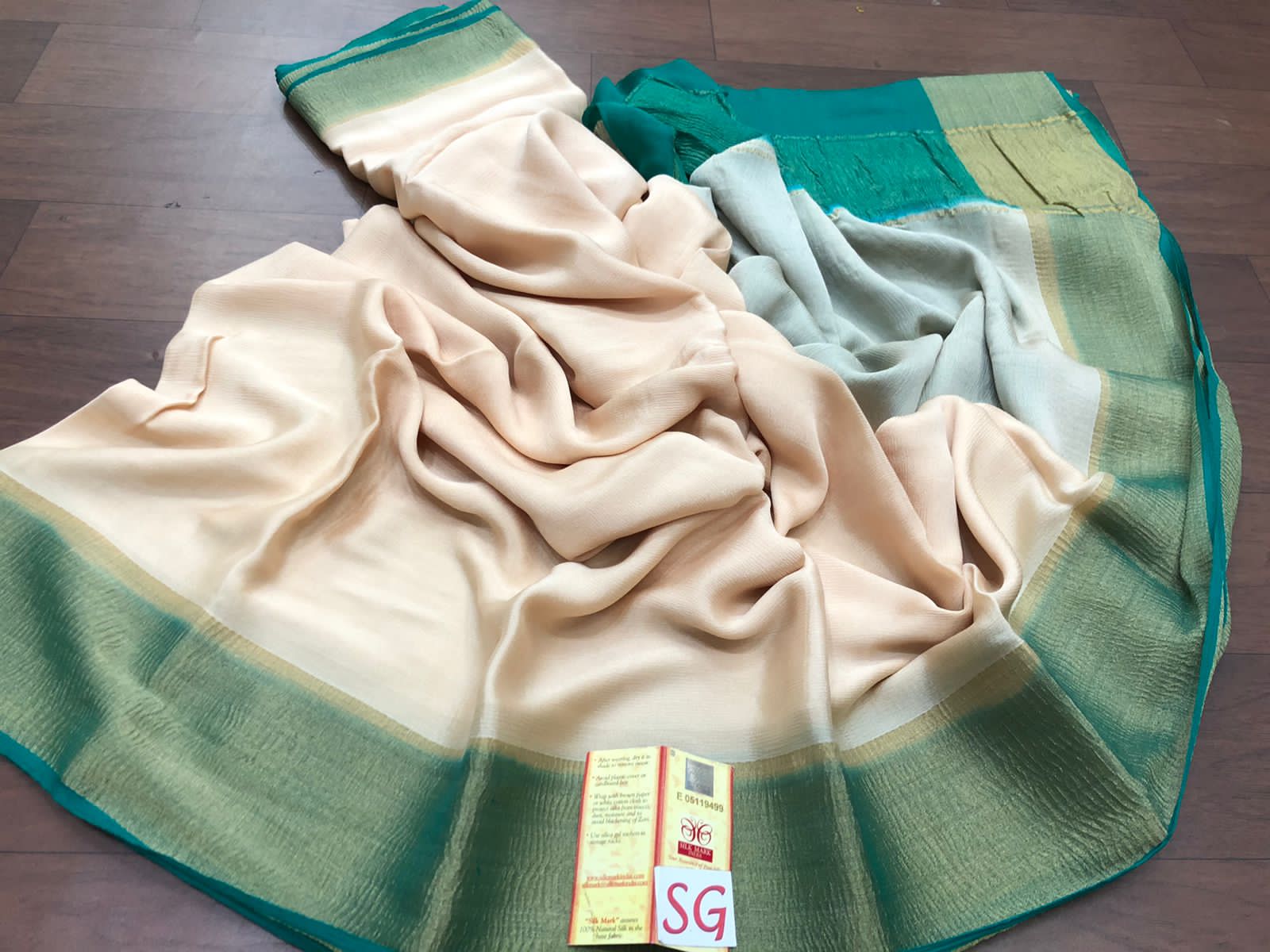 Christmas Special , Elegant Chanderi saree with matching blouse, featuring intricate cutwork floral detailing-DEEP001CS