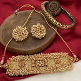SHEHNAYI, MATTE GOLD FINISH PEARL CHOKER SET FOR WOMEN -MOE HGPC001