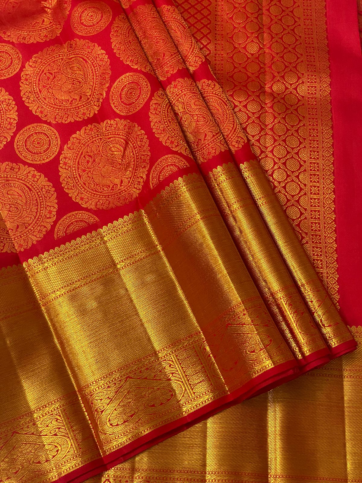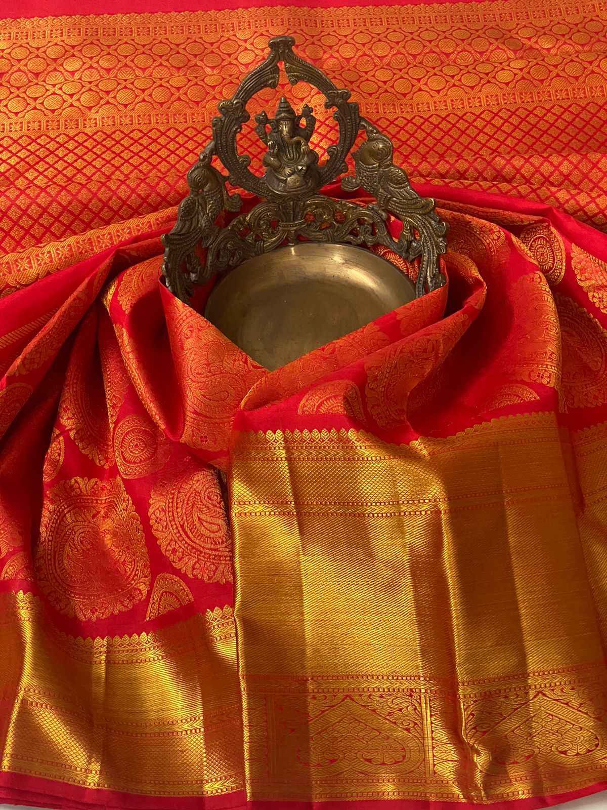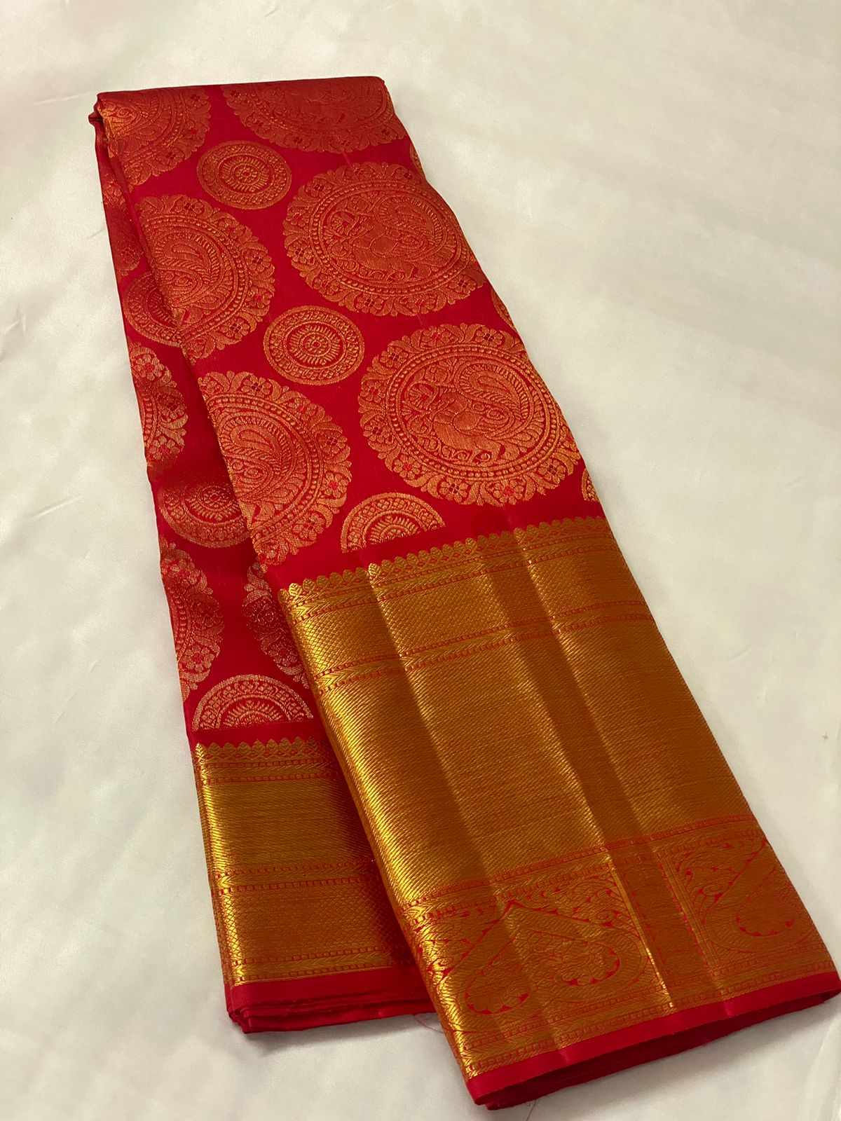 SHILPABALA , ELEGANT RED KANJIVARAM SILK SAREE FOR WOMEN -PDS001KSSSA