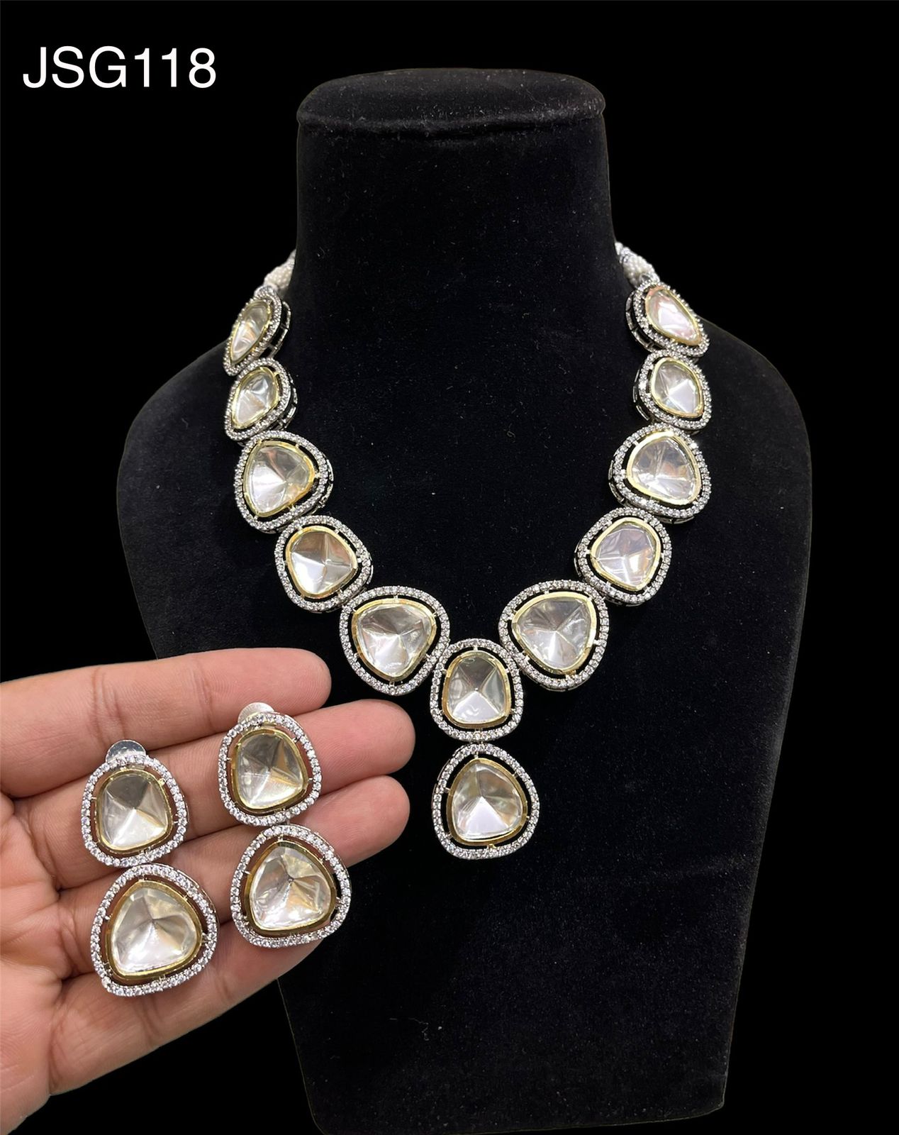 Mandira , elegant Gold Jewelry Finish Diamond studded Necklace Set for women -LR001DNB