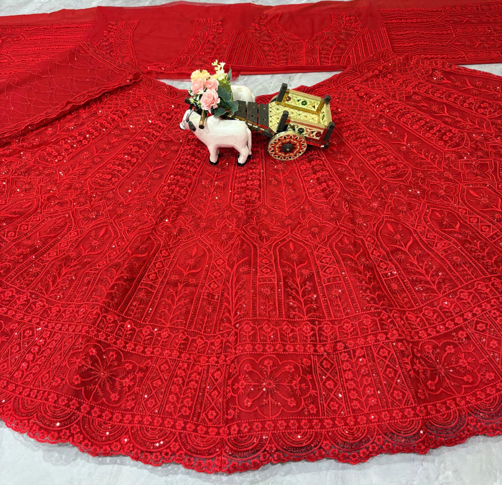 SSS Launching 4 meter Red Color flared Premium Quality Soft Net Lehenga-SSS001RL