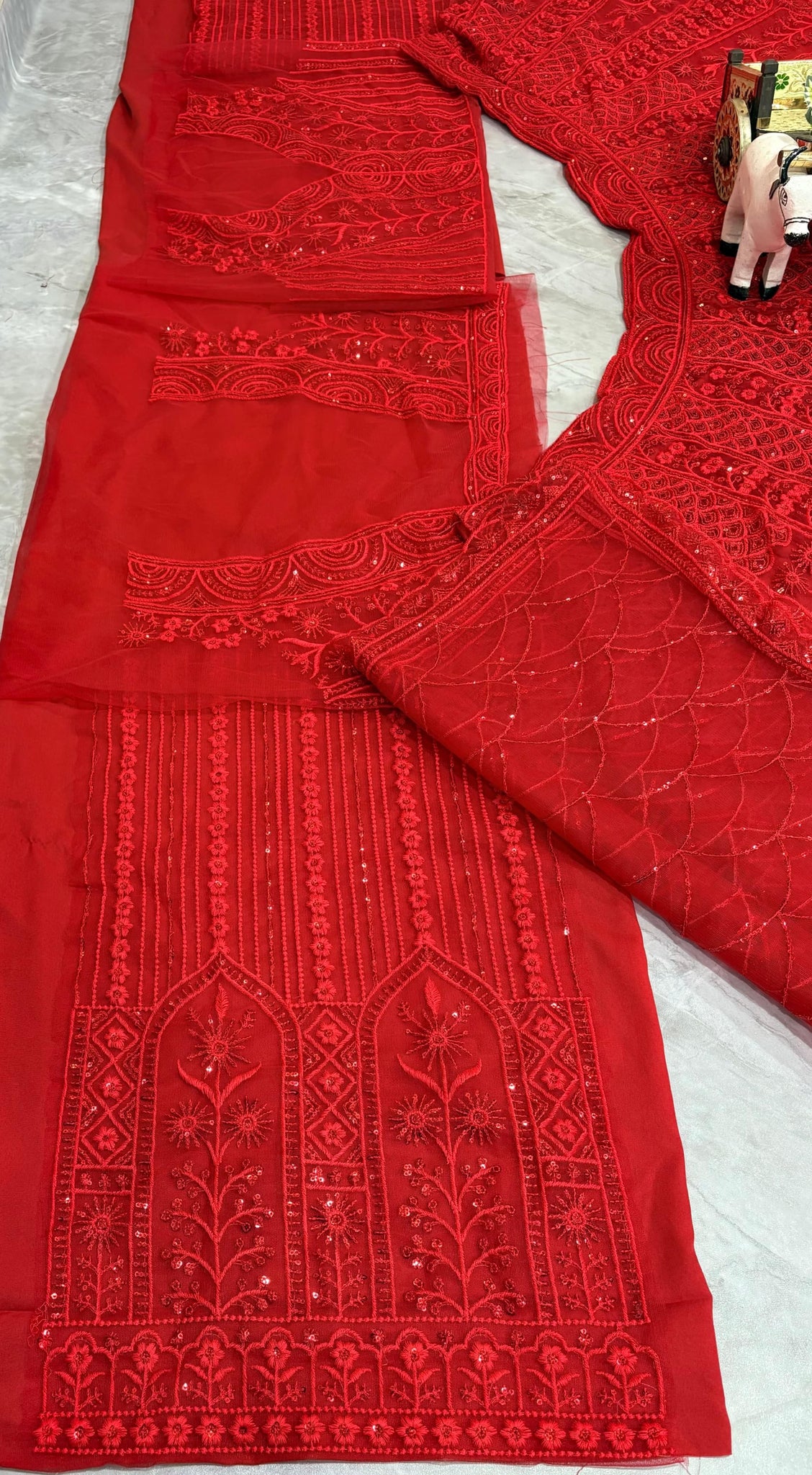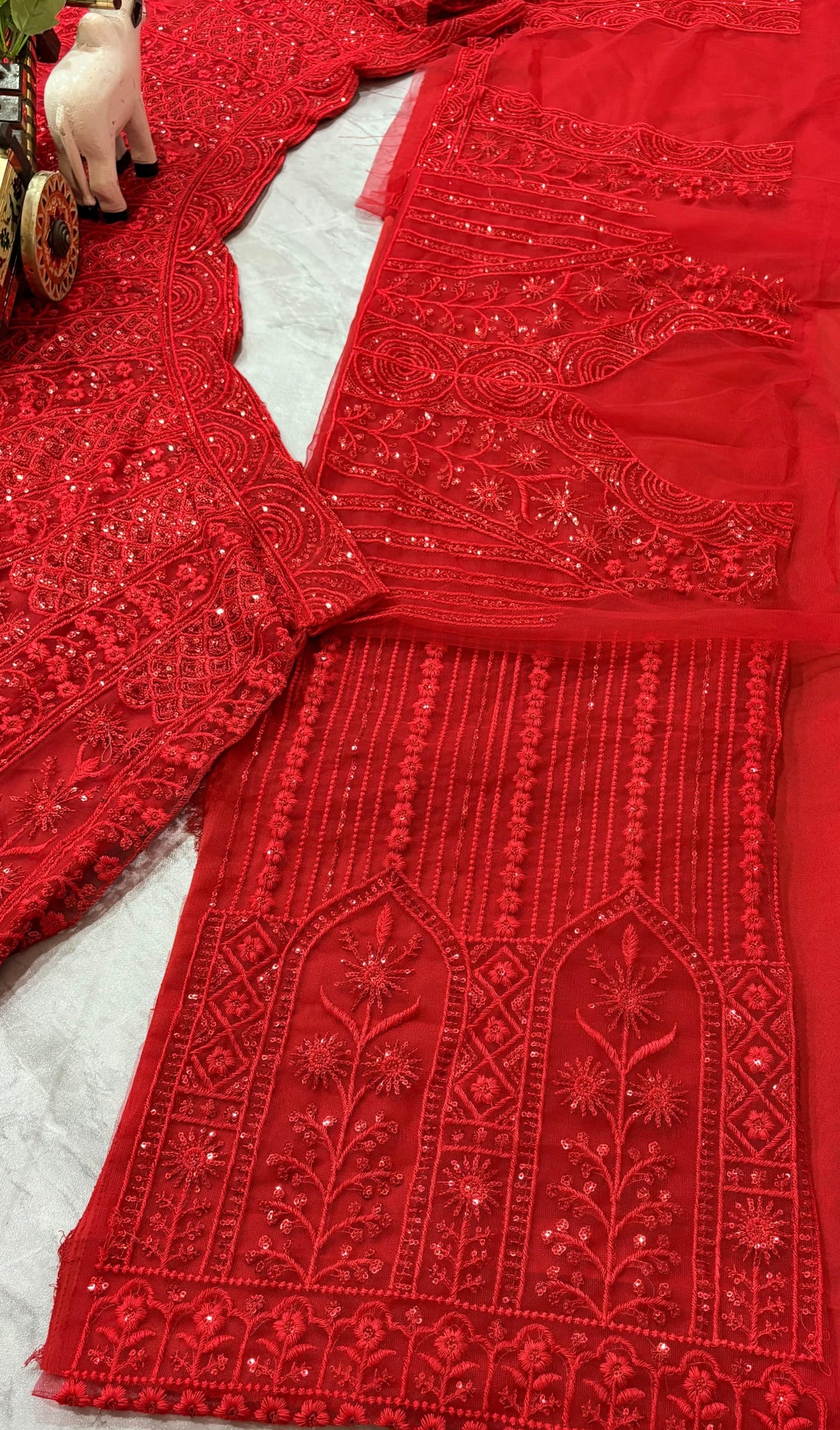 SSS Launching 4 meter Red Color  flared Premium Quality Soft Net Lehenga-SSS001RL