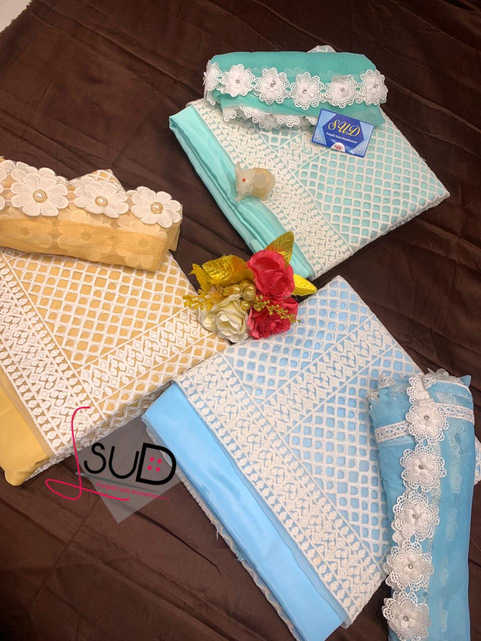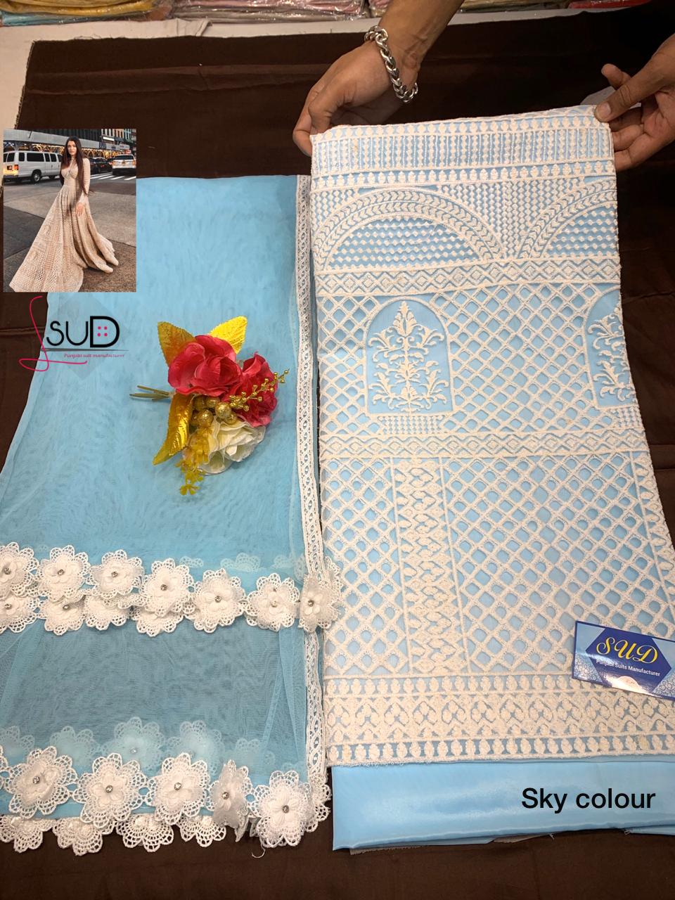SUD present Aishwarya Rai Bachan Inspired Beautiful Chikankary embroidery on net in Pastel Shade-OFZSSM001