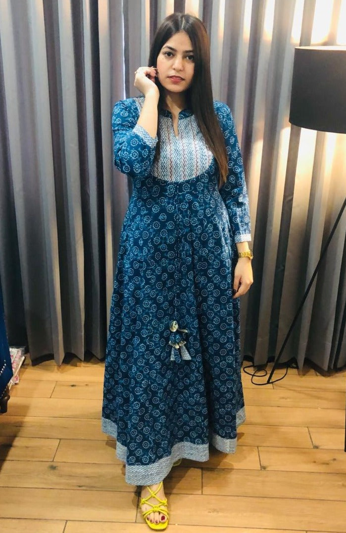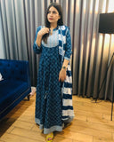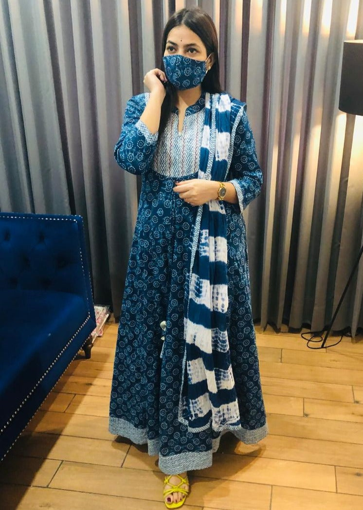 SUNEHRI INDIGO BLUE LONG GOWN WITH DUPPATTA AND MASK FOR WOMEN -SPLGWM001