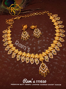 SURYAGAYATRI , MATTE GOLD FINISH TEMPLE NECKLACE SET FOR WOMEN -LRSG001