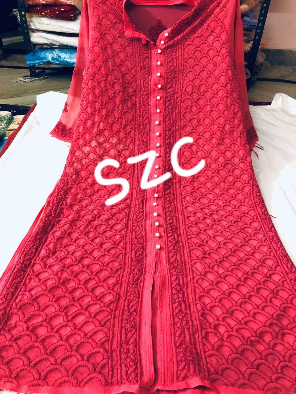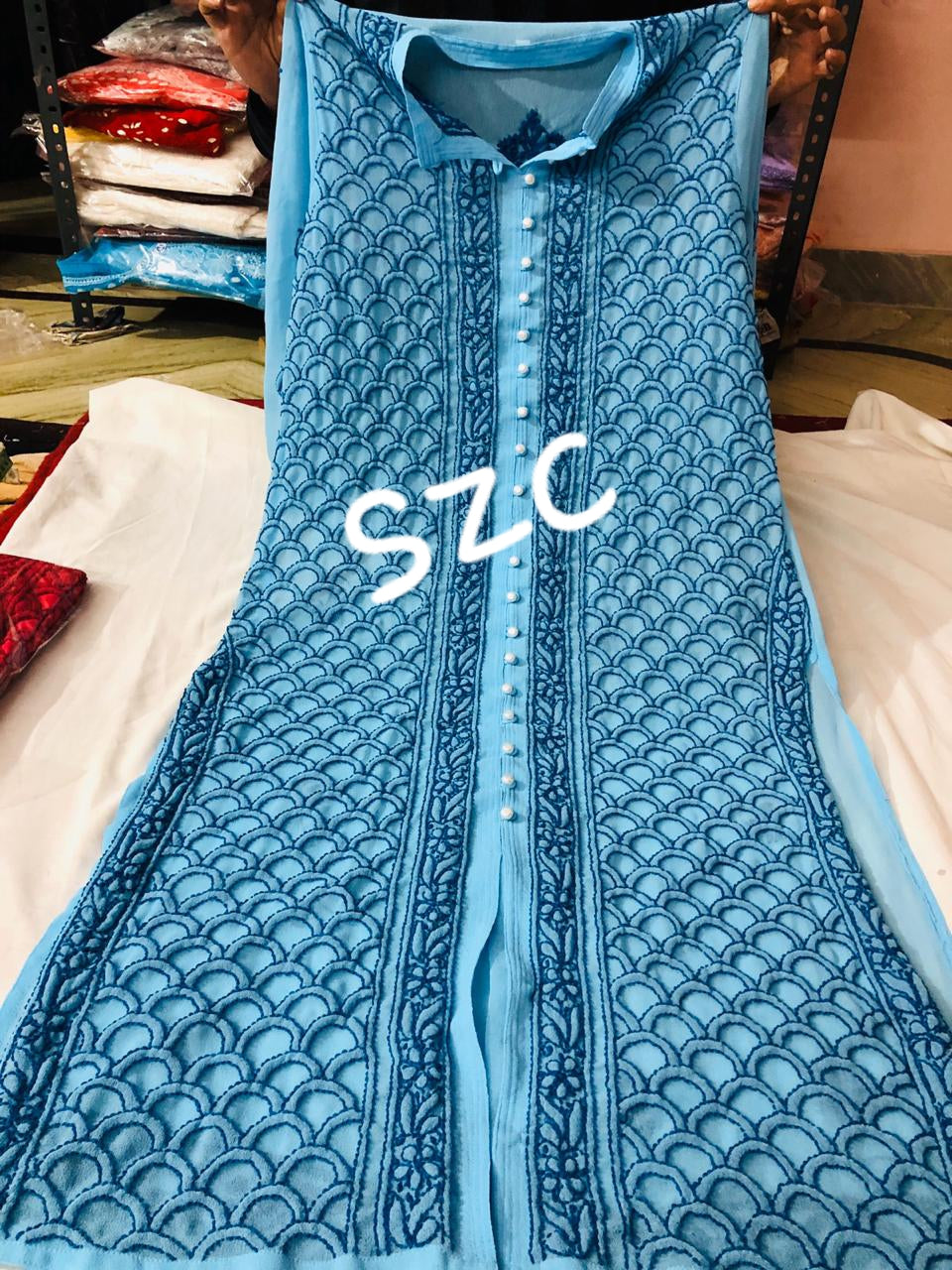 SZC BRAND pearl front open straight kurti for Women-LPSK001
