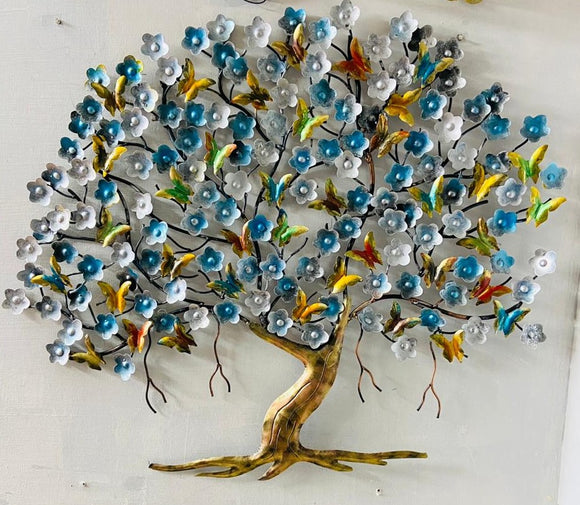 LARGE SIZE BUTTERFLIES ON  BLUE TREE WALL DECOR -PPAD001BT