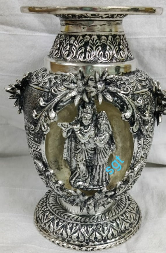 The RADHAMADHAVAM Vase, a splendidly modeled sculpture in German Silver-SNRMV001