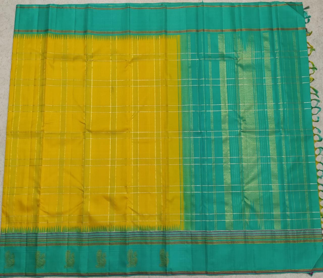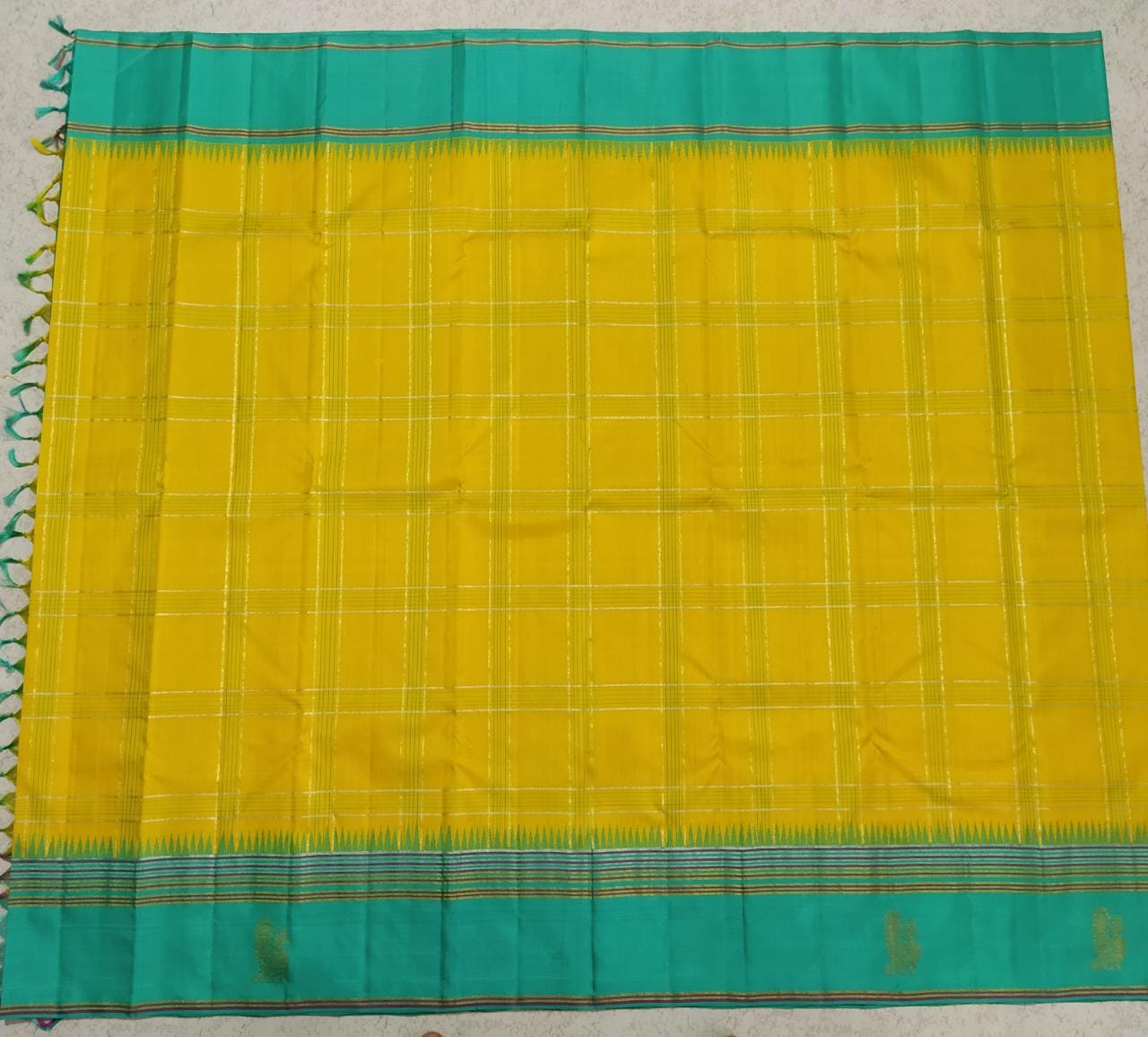💠Traditional Classic design Double side Korvai (Temple design) Border💠On body of saree silver jari checks