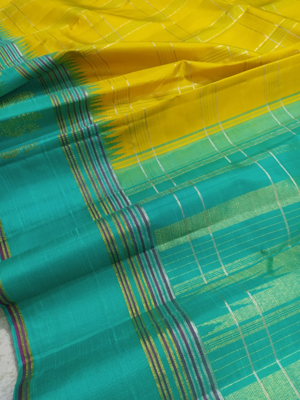 TRADITIONAL KORVAI DESIGN YELLOW KANJEEVARAM SILK SAREE FOR WOMEN-PSKSS0221231