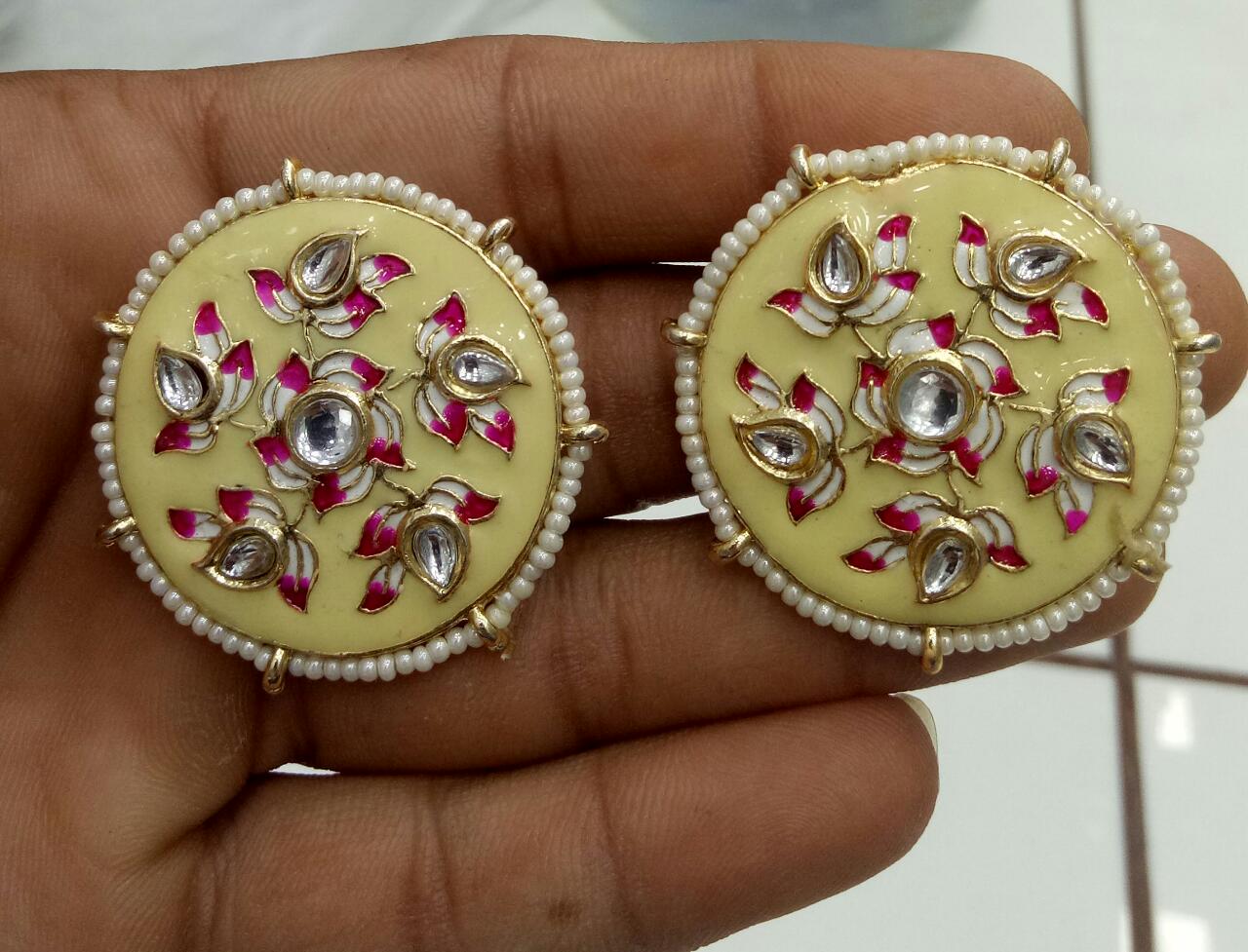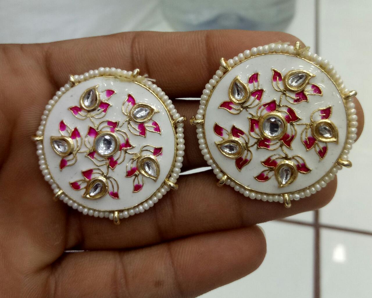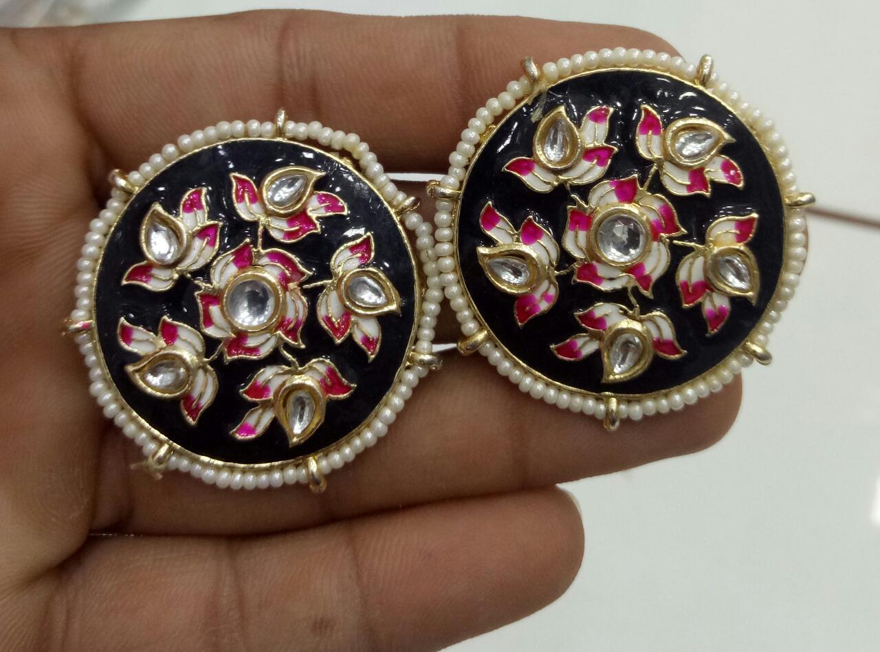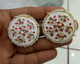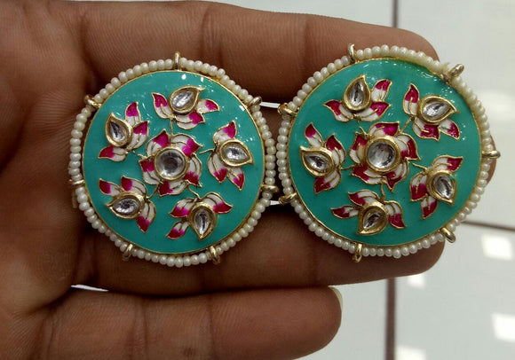 TRADITIONAL KUNDAN MEENAKARI PEARL LARGE SIZE EARRINGS FOR WOMEN -GCMS001