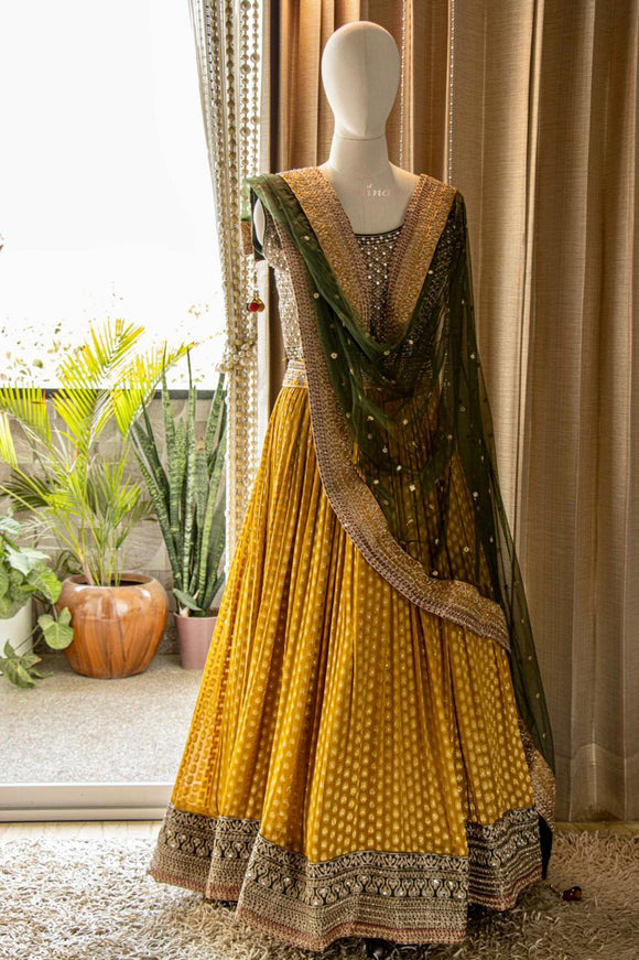 Gown : American Scuba fabric with inner , cancan & canvas_ full stitch Size - upto 42, length - 42inches