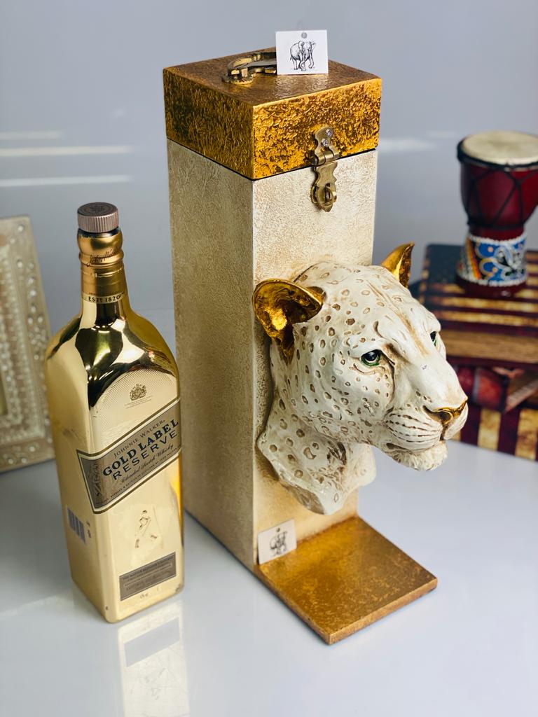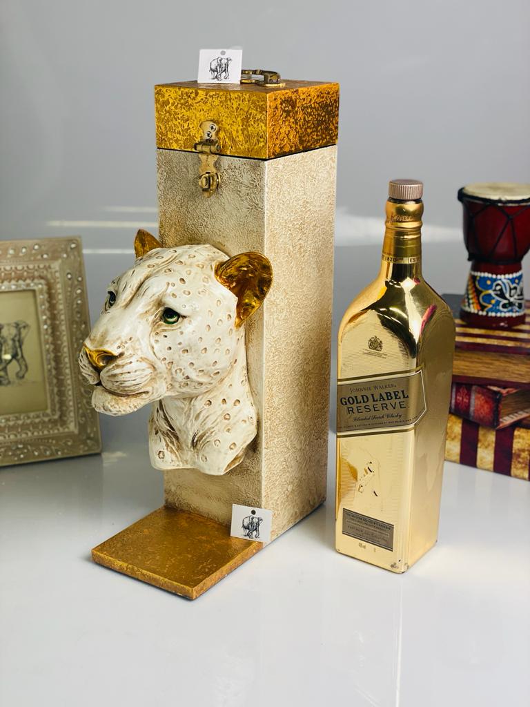 WOOD AND RESIN LEOPARD BOTTLE BOX -AHPBB001