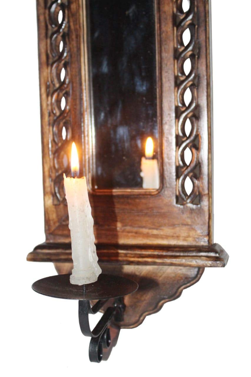 Wood Wall Hanging Mirror Reflection Candle Holder-GRIH001CH