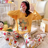 Yellow Pups, Beautiful Cartoon Printed Full Sleeves 2 Piece Night Suits for Women -IQNDK001